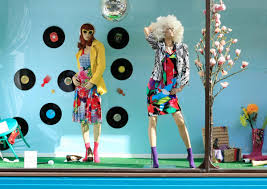 The body language in both these mannequins portrays massive confident and outgoing personality. Their poses are over exaggerated and unnatural through positioning of their arms and legs. The clothing they are dressed in follows up from their body language as it is also very extravagant. These outfits are quirky and of a required taste. The wigs worn also emphasis this aesthetic. The fashion being promoted could be suited to the summer season as they are bright and exciting. I personally think the mannequin designs are quite abstract in the sense that they are not aimed to be replicons of real life figures of fashion.